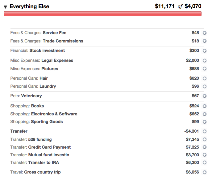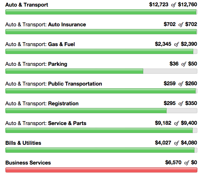 Business is red because Mint doesn’t have a way of categorizing “This spending comes out of this other checking account” so I don’t add it into the budget. But I do money transfers to equalize between the primary checking account and the business account. I’m going to need a better system one of these days. It is working so far.