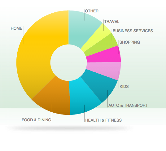I love the pie charts. Aren’t they cute? I wish home was a higher percentage of our spending. I am totally spending money in other sections at an accelerated rate.
